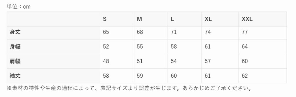 サイズ ; S~XXL